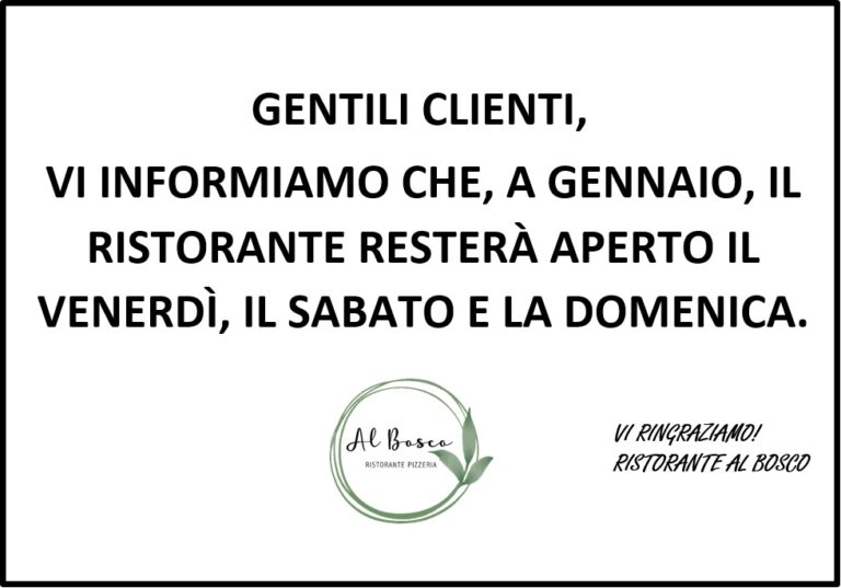 Nel mese di Gennaio e Febbraio chiuso anche il Mercoledì