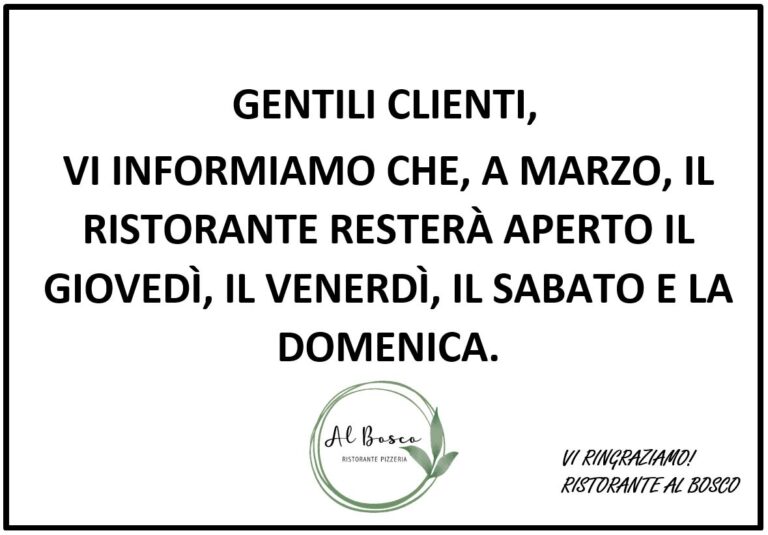 Chiuso tutti i Lunedì e Martedì